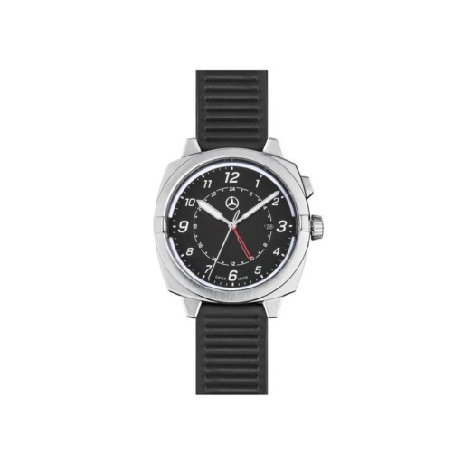 Solidny, sportowy zegarek męski inspirowany G Klasą Mercedes-Benz. Męski zegarek na rękę przyciąga wzrok licznymi aplikacjami, których design przypomina Klasę G. Od zaczepów pasków, które przypominają kierunkowskazy w terenowych samochodach, po współgranie kwadratowych i okrągłych elementów koperty, cyfry zapisane tą samą czcionką co obrotomierz w popularnej Klasie G oraz dodatkowe podświetlenie tarczy, imitujące wygląd reflektorów, które uruchamiamy przyciskiem, a także wypukłą gwiazdę Mercedesa umieszczoną na godzinie 12 oraz silikonowy pasek z wytłoczeniami na powierzchni, które przypominają szyny drapujące w Klasie G, oferuje optymalną nośność.