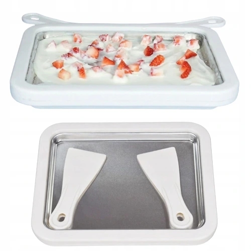 Maszynka do lodów tajskich to innowacyjny sposób na zrobienie domowych lodów, ale także oryginalne deserów lodowych. Ja za kilka minut! Zalety Szybki sposób na lody i desery lodowe Idealnie przyrządzają zawijane lody powstające w kilku sekundach Dostępne zawsze, gdy masz na nie ochotę Jak stworzyć tajskie lody proste Wystarczy umieścić wtyczkę misę (tak zwaną „patelnią do lodów”) do zatrzymaniarki na 24h. przez cały czas, aby zobaczyć, jak wyglądało działanie. Następnie należy wprowadzić składniki, z których chcemy zrobić lody. Po wyjęciu misy, należy rozpuścić lodową na sam środek i rozprowadzić źródło po całej powierzchni. W tym momencie mikstura zamieniła się w prawdziwe lody. Pewnymi i szybkimi ruchami, należy uformować z nich deser. Gotowe zawijane lody możesz zmieniać w pucharkach, miseczkach lub na talerzyku. zaletą jest to, że lody powstają baaaaardzo szybko! Pakiet zawiera: 1 sztukę maszyny do lodów 2 ergonomiczne szpatułki Dane techniczne: Kolor: biały Materiał: ze stali nierdzewnej Rozmiar: ok. 26x21cm Waga: ok. 1200g