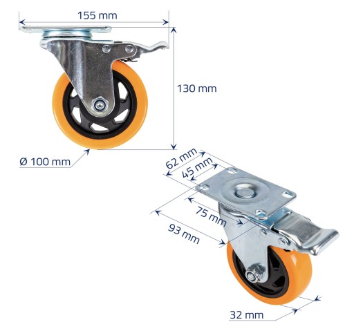 ✅KÓŁKA TRANSPORTOWE ZESTAW 4SZT 100 460KG Z BLOKADĄ KOŁA DO DUŻYCH OBCIĄŻEŃ