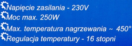 Urządzenie wyposażone w mechanizm grzewczy o mocy 250W oraz 16-stopniową regulację ustawienia temperatury.
