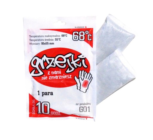 Nietoksyczny i niepalny ogrzewacz chemiczny przeznaczony do ogrzewania dłoni. Grzeje przez około 10 godzin ze średnią temperaturą 55oC. Maksymalna temperatura jaką osiąga wynosi 68oC.