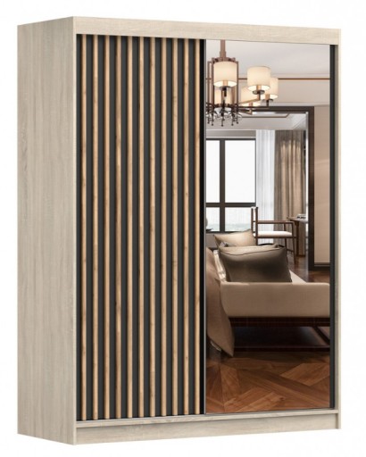 ЛАМИ 150 Шкаф-купе Зеркало + полки из ламелей лофт