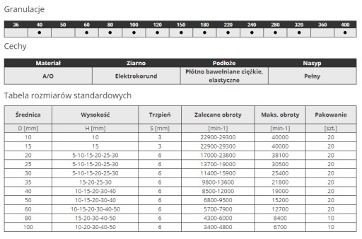 Ściernice trzpieniowe z płótna - Elektrokorund
