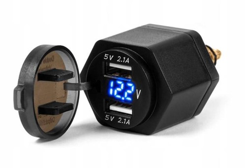 Motocyklowe gniazdo DIN do BMW / TRIUMPH z voltomierzem - 2 x USB - 4.2 A