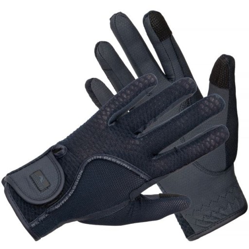 Ten model rękawiczek idealnie sprawdzi się u osób, które zapragną założyć dodatek nadający sportowy styl. Dzięki antypoślizgowemu materiałowi po wewnętrznej stronie, rękawice zapewniają wysoki komfort użytkowania, co czyni je również niezwykle praktycznymi. Po zewnętrznej stronie znajdują się dwa rodzaje siateczek, w tym jedna ażurowa, dzięki czemu świetnie dopasowują się do dłoni i zapewniają dobry przepływ powietrza. Rękawiczki są także wyposażone we wzmocnienia w miejscu trzymania wodzy. Dzięki specjalnemu materiałowi naszytemu na kciuku i palcu wskazującym, są przystosowane do korzystania z ekranu dotykowego telefonu. Zapinane na mocny rzep z czarnym logo "START".