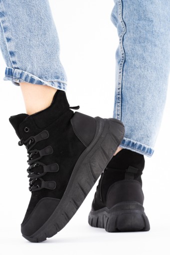 Czarne Śniegowce Botki damskie ocieplane Dover 39