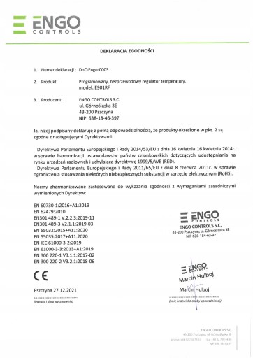 Regulator bezprzewodowy termostat Engo E901RF