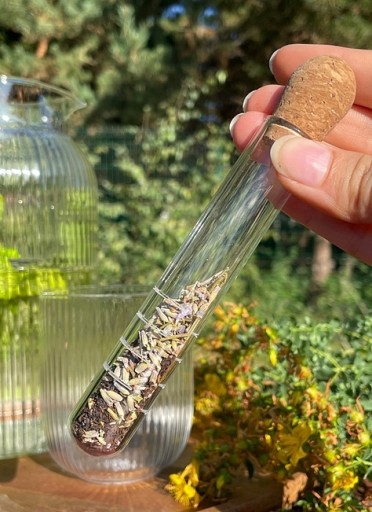 ✅ Zaparzacz ma formę delikatnej fiolki, co nadaje mu subtelnego i stylowego wyglądu. Jest to nie tylko narzędzie do zaparzania ziół, ale także ozdoba wnętrza.
