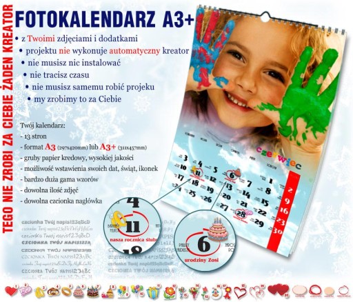 fotokalendarz A3, Twoje daty, projekt gratis, 2025