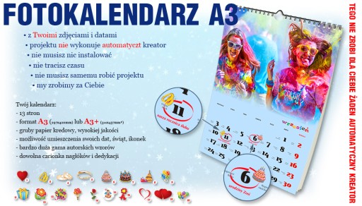 PROMOCJA - kupując 3 szt. (takie same) dostaniesz jeden kalendarz jednostronicowy z Twoim zdjęciem A4 GRATIS.