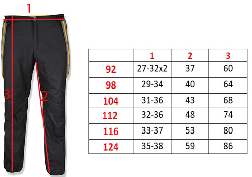 - Do spodni są dołączone elastyczne, szelki (na rzepy) z możliwością regulacji długości.
