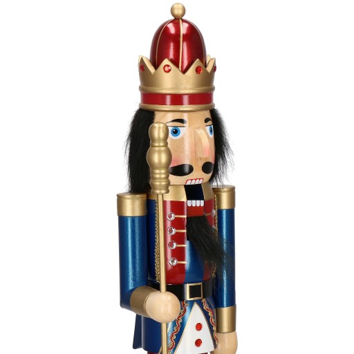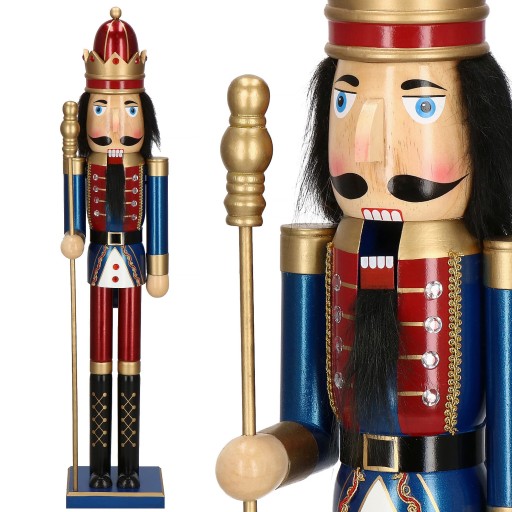 - Parametry: dziadek do orzechów z drewna, wysokość 90 cm, szczegółowe wykonanie, kolory: ciemnoczerwony i niebieski