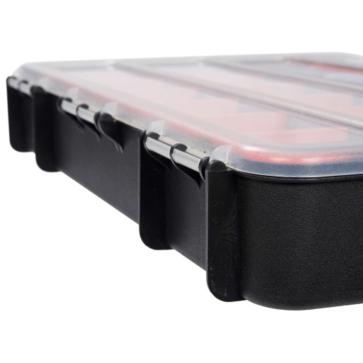 - Dzięki możliwości regulacji rozmiarów przegród świetnie nadaje się do przechowywania drobnych elementów: śrub, wkrętów, nakrętek jak i tych o większych gabarytach zależnie od konfiguracji wnętrza.