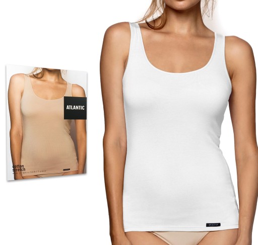 Atlantic BLV-198 to przylegająca do ciała koszulka damska wykonana z miękkiej w dotyku bawełny połączonej z elastanem, która dodatkowo jest też bardzo wytrzymała i odporna na mechaniczne działanie. Podkoszulka charakteryzuje się szerszymi ramiączkami oraz okrągłym dekoltem umiarkowanej głębokości. Idealnie przylega do ciała.
