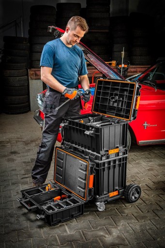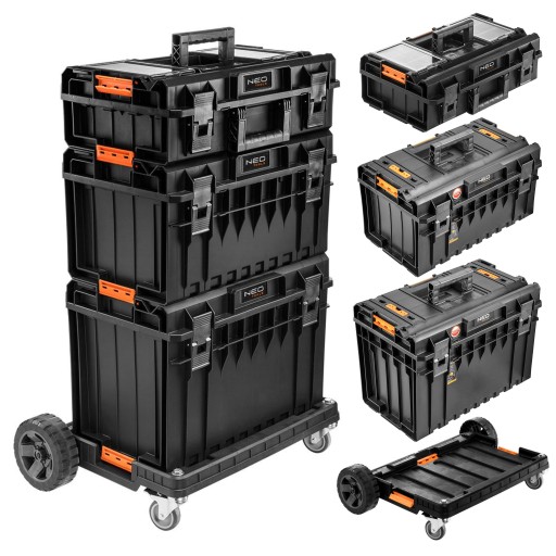 System NEO (nr ref. 84-259) to trójmodułowa stabilna konstrukcja na platformie z kołami, służąca do transportu i magazynowania narzędzi budowlanych. Bardzo mocna konstrukcja pozwala na przewożenie wielu ciężkich narzędzi. Możliwe jest również stawanie na pokrywie, w celu zwiększenia zasięgu. Moduły posiadają wiele zalet: są bardzo pojemne, posiadają regulowane przegrody, solidne zapięcia, mocny uchwyt, uszczelki w pokrywach. Są odporne na pył i wodę. Posiadają również głębokie tacki oraz wnękę do przycinania z miarą.