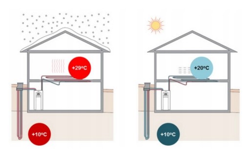 - Wbudowane pompy obiegu grzewczego oraz solanki