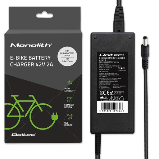 Qoltec Ładowarka do baterii roweru elektrycznego 36V | 42V | 2A | 5.5*2.5