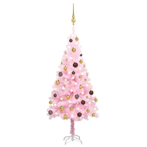 Sztuczna choinka z lampkami i bombkami, różowa, 120 cm, PVC