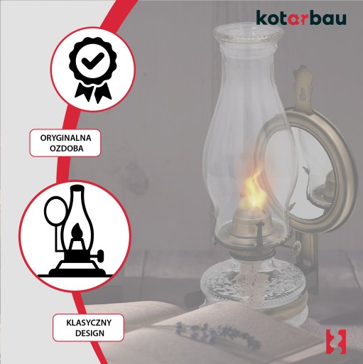 - Regulowany płomień pozwala dostosować intensywność światła, a szklany cylinder ułatwia czyszczenie lampy.