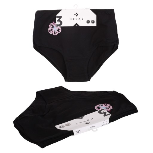 CZARNE MAJTKI DAMSKIE FIGI BAWEŁNIANE GŁADKIE Z KWIATKIEM MORAJ 3-PAK - XXL