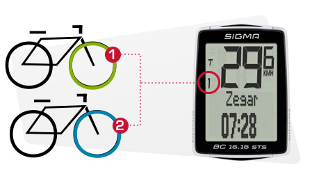 Licznik posiada wbudowaną pamięć dla dwóch rowerów - wystarczy wejść w menu i wybrać odpowiedni rower!