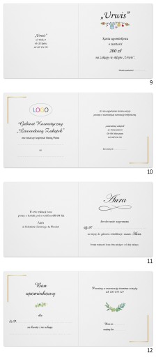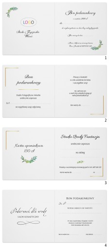 BON PODARUNKOWY karta upominkowa salon kosmetyczny LOGO sznurek kwiaty