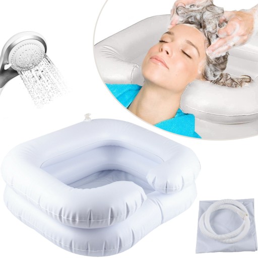 - Przenośna, nadmuchiwana, wygodna do mycia włosów. Wgłębienie na szyję zapewnia komfort użytkowania.