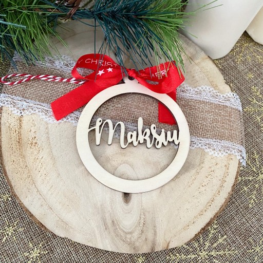 BOMBKA DREWNIANA NA CHOINKĘ Z DOWOLNYM IMIENIEM - OZDOBA ŚWIĄTECZNA
