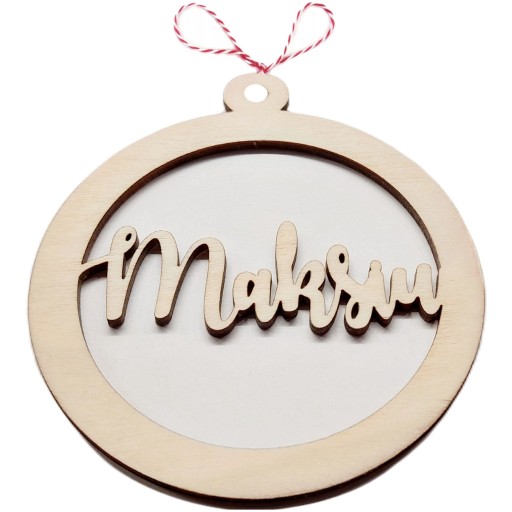 BOMBKA DREWNIANA NA CHOINKĘ Z DOWOLNYM IMIENIEM - OZDOBA ŚWIĄTECZNA