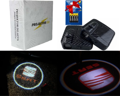 СВЕТОДИОДНЫЙ ЛОГОПРОЕКТОР SEAT Arona Ateca Tarraco Mii Alhambra + БЕСПЛАТНЫЕ БАТАРЕИ