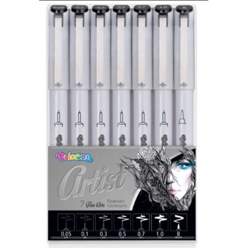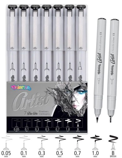 Profesjonalne cienkopisy do szkicowania z siedmioma rozmiarami końcówki. Przypadną do gustu szczególnie artystom, którzy cenią sobie precyzję i wykonanie detali rysunku. Cienkopisy odporne na wodę i blaknięcie. 7 końcówek w rozmiarach: 0.05 mm, 0.1 mm, 0.3 mm, 0.5 mm, 0.7 mm, 1.0 mm i B.