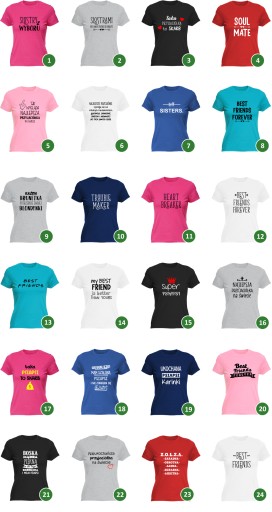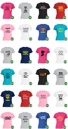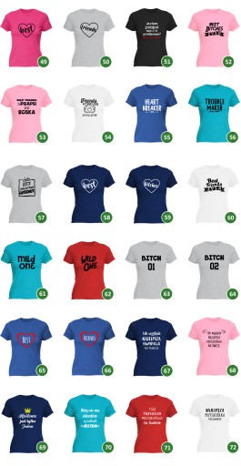Oto galeria z dostępnymi wzorami koszulek z nadrukiem. Wybierz ten, który Cię interesuje i podaj nam jego numer w "wiadomości do sprzedającego" lub mailem.