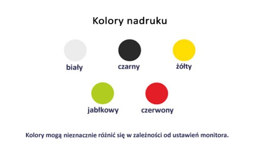 Poniżej znajdują się próbki dostępnych kolorów nadruku.