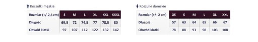 Dla Twojej wygody zmierzyliśmy koszulki i ich wymiary zamieściliśmy w poniższych tabelach. Przy wyborze rozmiaru kieruj się wymiarami podanymi w tabeli (pamiętaj, że np. rozmiar L to nie zawsze takie samo L u wszystkich producentów).