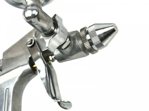 Pistolet lakierniczy przeznaczony do nanoszenia za pomocą sprężonego powietrza farb i lakierów. Idealny do prac wykończeniowo-zaprawkowych. Udoskonalona konstrukcja dyszy (mosiężna) zapewnia równomierne rozpylanie i doskonałą jakość wykończenia. Zwiększona wydajność nanoszenia wynikająca z konstrukcji, która dopuszcza mniejsze ciśnienie materiału i powietrza.