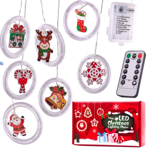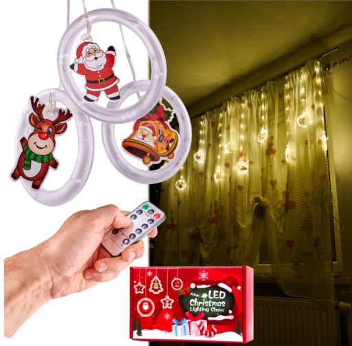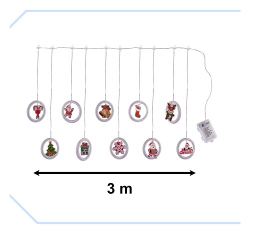 LAMPKI LED KURTYNA Z OBRAZKAMI BOŻE NARODZENIE W KÓŁKACH 3M 10 ŻARÓWEK NA BATERIE PILOT