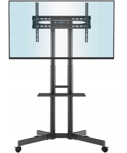 Wózek TV jest wyposażony w cztery wytrzymałe, blokowane kółka, które toczą się płynnie, gdy trzeba go przesunąć. Bezpiecznie zablokuj mechanizm każdego koła, aby podstawka wygodnie leżała tam, gdzie chcesz.