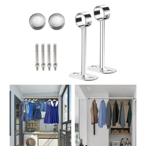 Łatwy w instalacji, wybierz pozycję, którą zainstalować, przymocuj jeden ze wsporników za pomocą śruby rozporowej i załóż rurę, a następnie zabezpiecz wspornik