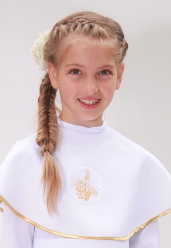 Bolerko może być lamowane srebrnobiałą lub złotą lamówką oraz ma naszyty IHS w takim samym kolorze do wyboru - należy to zaznaczyć przy składaniu zamówieniu.