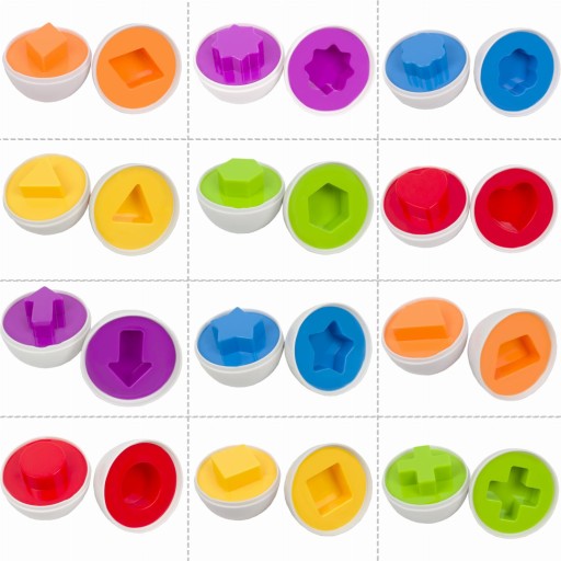 UKŁADANKA JAJKA / PUZZLE / PASUJĄCE KSZTAŁTY / 12 JAJEK / 6 KOLORÓW / 12 RÓŻNYCH KSZTAŁTÓW