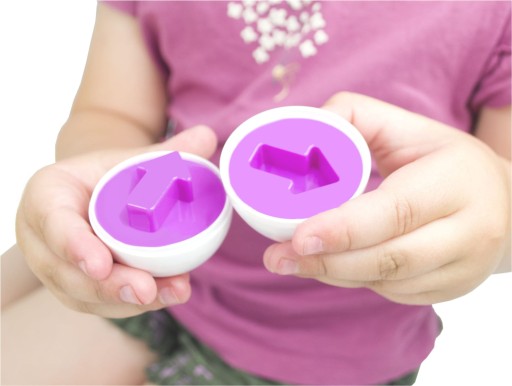 Każde jajko posiada inny ukryty kształt. Jest ich aż 12! A po rozłożeniu – 24! Dziecko uczy się jak wyglądają: