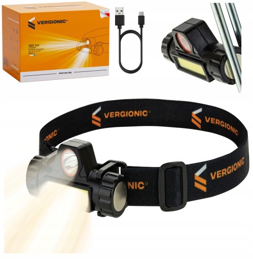 ⭐LATARKA CZOŁOWA Z MAGNESEM NA USB VERGIONIC LED