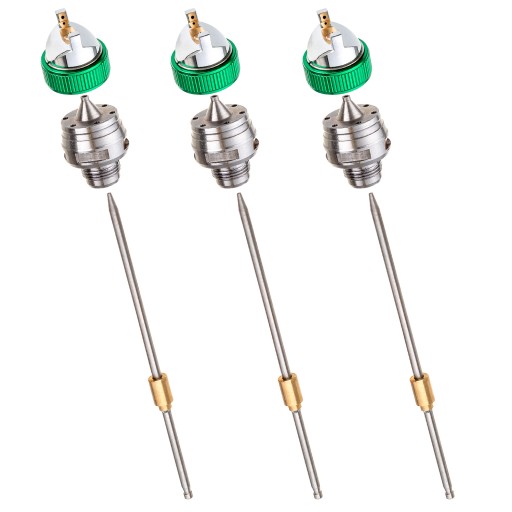- Cztery dysze z iglicami: 1,3 + 1,4 + 1,7 + 2,5 - jedna zamontowana w pistolecie, trzy dostarczane osobno