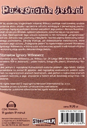 POŻEGNANIE JESIENI - STANISŁAW IGNACY WITKIEWICZ [AUDIOBOOK] [CD-MP3] Stan opakowania oryginalne