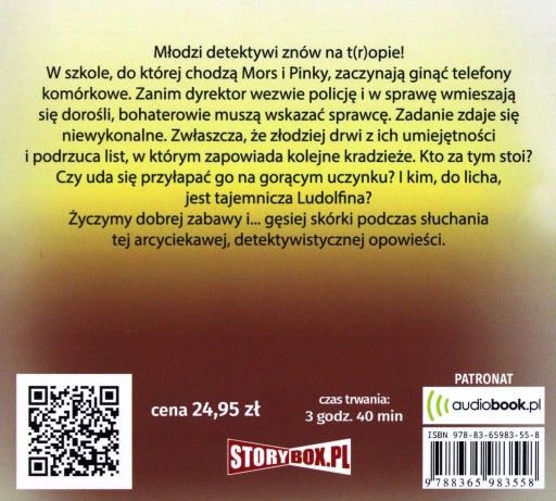 W szkole, do której chodzą Mors i Pinky, zaczynają ginąć telefony komórkowe. Zanim dyrektor wezwie policję i w sprawę wmieszają się dorośli, bohaterowie muszą wskazać sprawcę. Zadanie zdaje się niewykonalne. Zwłaszcza, że złodziej drwi z ich umiejętności i podrzuca list, w którym zapowiada kolejne kradzieże. Kto za tym stoi? Czy uda się przyłapać go na gorącym uczynku? I kim, do licha, jest tajemnicza Ludolfina?