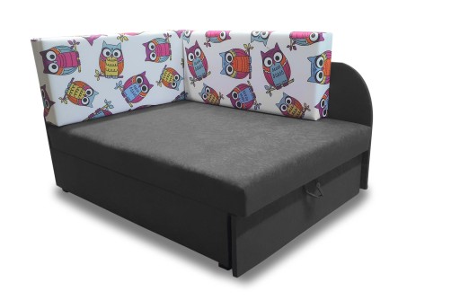 - Łóżko idealnie nadaje się do pokoju dla dziecka, ze względu na proste wykonanie oraz barwną tkaninę z której jest wykonane.