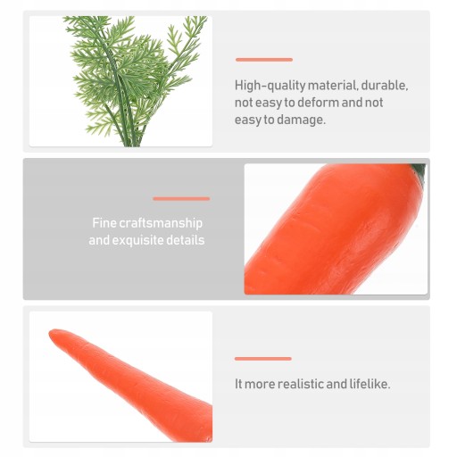 Ten jest fałszywy Marrot Dekoracja. Wykonane z materiału piankowego, jest idealny na wystrój domu. Jego naturalny design może nie tylko udekorować twój dom, ale także dodać dotknięcie kaprysu i nieoczekiwany styl. Poza tym może być wspaniały prezent dla przyjaciół i rodzin.