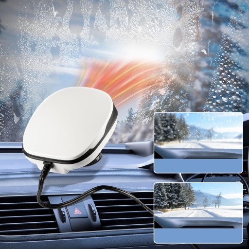 【ŁATWY W UŻYCIU】 Łatwa obsługa, wystarczy podłączyć go do gniazda zapalniczki 12 V w pojeździe i włączyć. Skutecznie pozwala szybko odmrozić lub odparować okno. Posiada trzy główne wyloty powietrza nagrzewnicy samochodowej, które mogą zapewnić szybkie nagrzewanie i wygodny efekt ogrzewania.