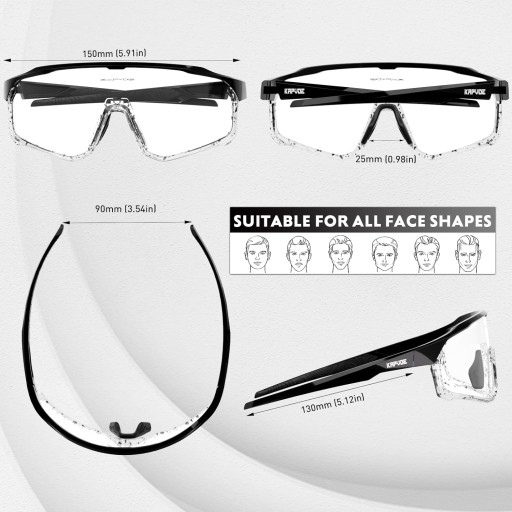 REGULOWANY NOSEK - Te fotochromowe spolaryzowane okulary przeciwsłoneczne z regulowanym miękkim gumowym noskiem można dopasować do kształtu nosa i zapewnić wygodę, a okulary rowerowe nie zsuwają się z twarzy podczas uprawiania sportów na świeżym powietrzu.