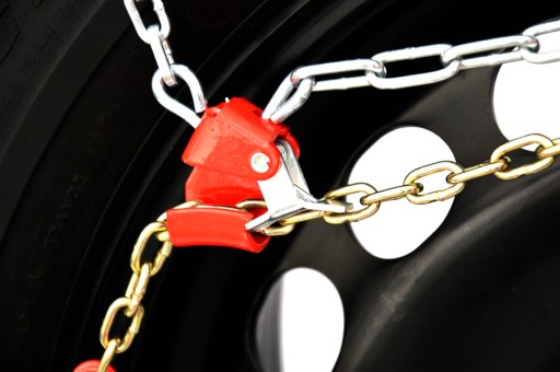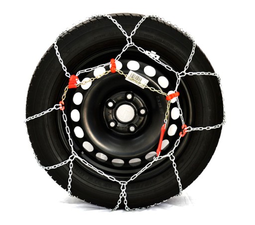 Diamentowy (rombowy) wzór łańcuchów śniegowych zapobiega poślizgom bocznym.